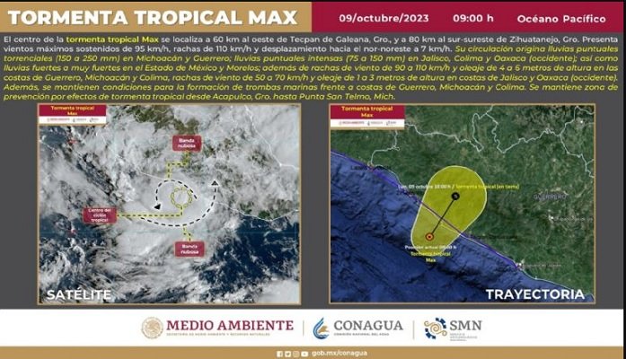 La depresión tropical Dieciséis-E se intensificó este domingo por la noche a la tormenta tropical Max, con un desplazamiento hacia…