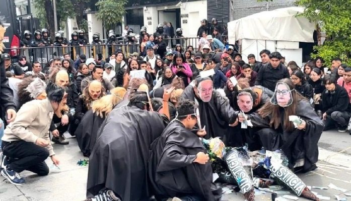 Trabajadores del poder judicial se manifiestan afuera del Senado de la República en demanda de que no sea aprobada la…