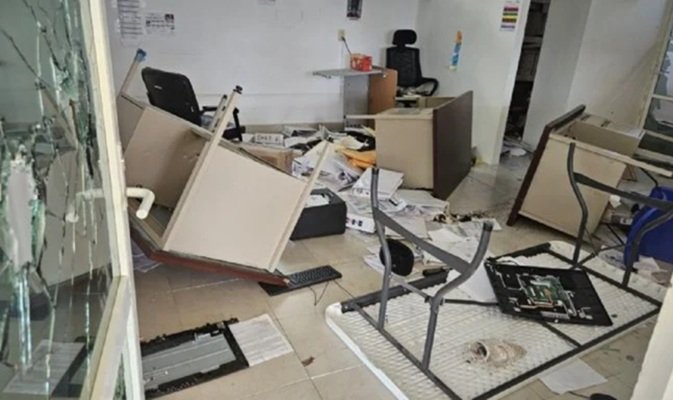 Estudiantes de la Escuela Normal Rural Raúl Isidro Burgos de Ayotzinapa irrumpieron y causaron destrozos en las oficinas centrales de…