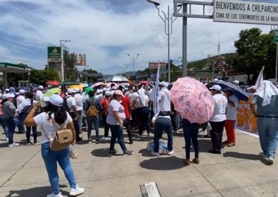 Integrantes del Sindicato Nacional de Trabajadores de la Educación (SNTE), bloquean la Autopista del Sol a la altura del Parador…