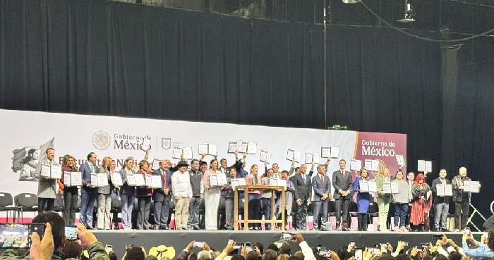 En reunión histórica con mil 948 de los 2 mil 478 presidentes municipales del país, y acompañada por los 31…
