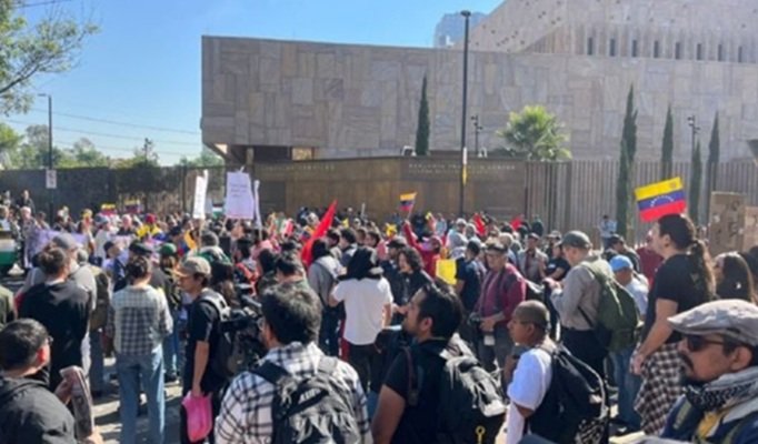 Grupos activistas y organizaciones solidarias con Venezuela convocaron a una manifestación frente a la Embajada de Estados Unidos en México…
