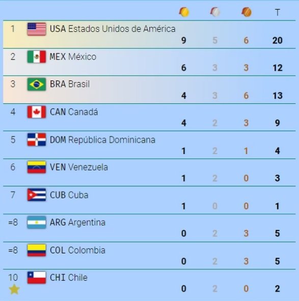 Únicamente por debajo de Estados Unidos, que sumó 20 medallas totales y 9 de oro.