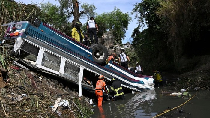 Al menos 52 personas murieron este lunes cuando un autobús, con más de 70 personas a bordo, cayó al fondo…