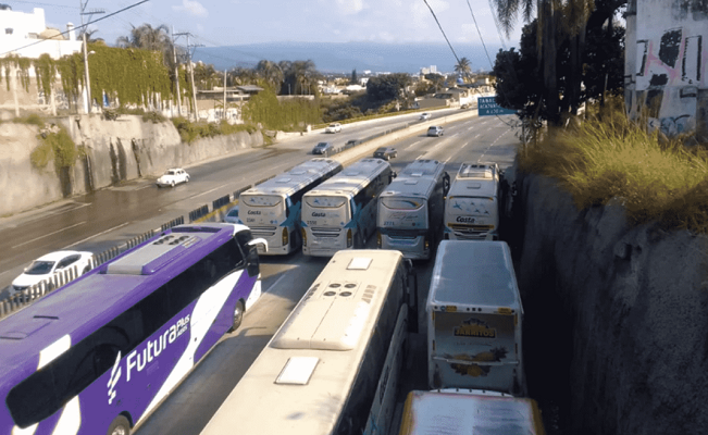 Integrantes de la Coordinadora Nacional de los Trabajadores de la Educación (CNTE) realizan un bloque en el Paso Exprés de…